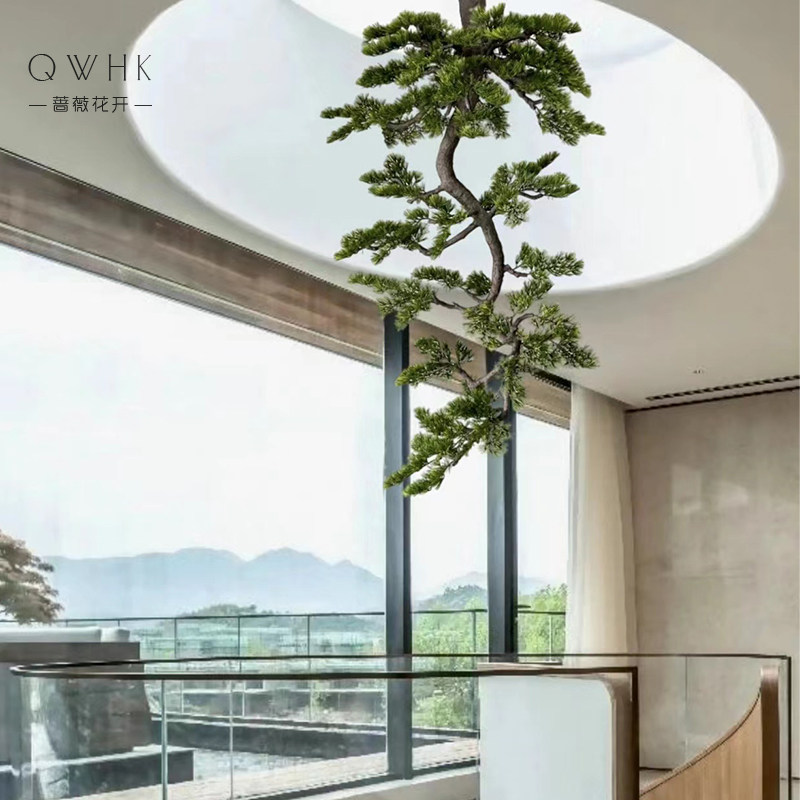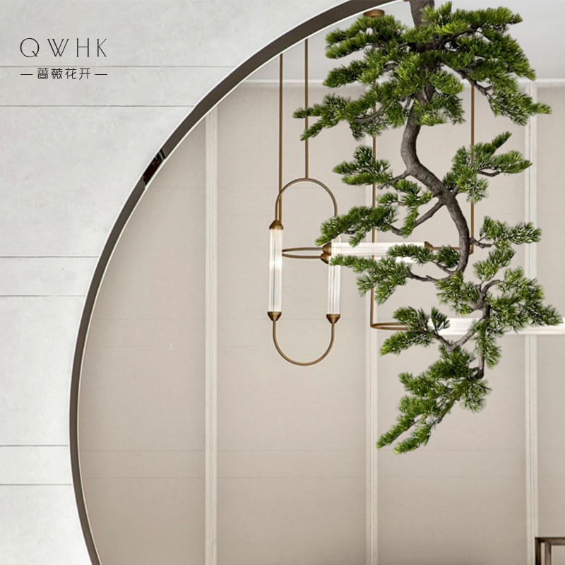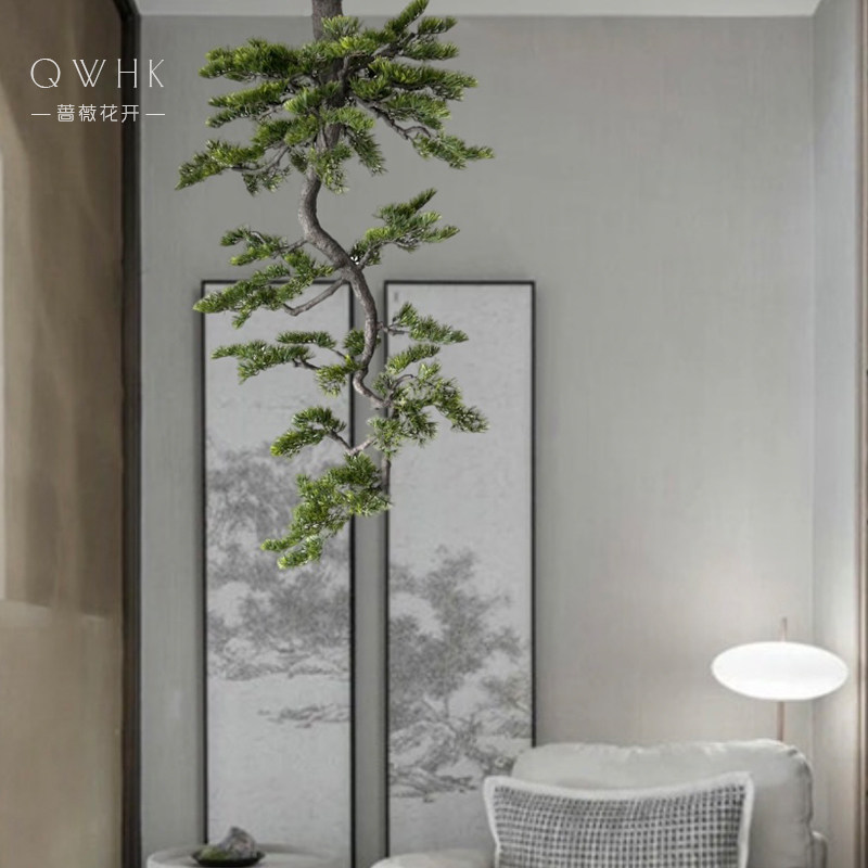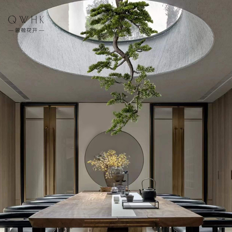 New Chinese Suspension Emulation Greet Passenger Pine Tree Large Green Plant Decoration Plant Table Aisle End View Tea Room Sample House Display Center