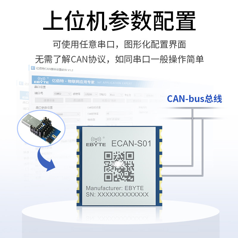 Ebyte TTL to CAN-BUS bidirectional transparent conversion USB to CANOpen protocol ModBus converter