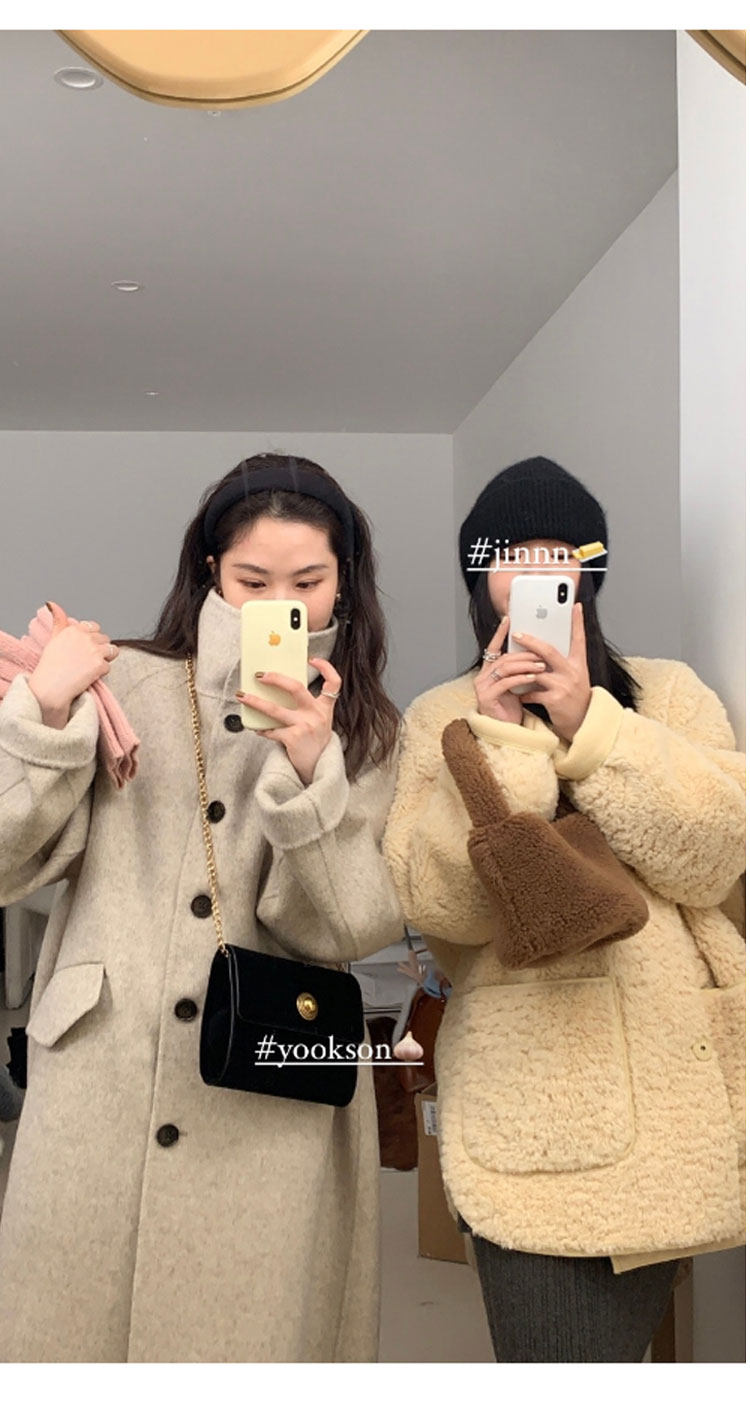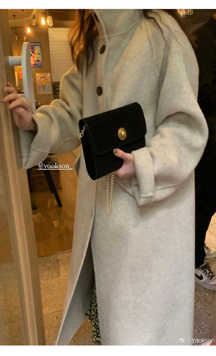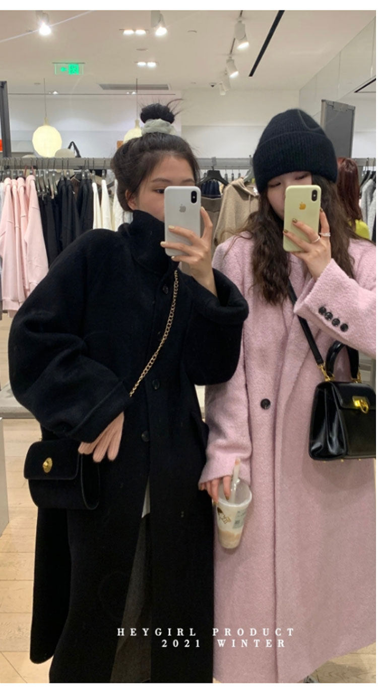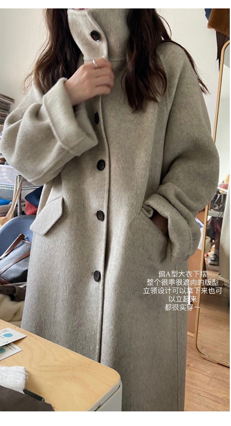 Stand collar double-sided cashmere coat women's mid-length 2023 new bubble pie women's cream blue loose woolen coat women
