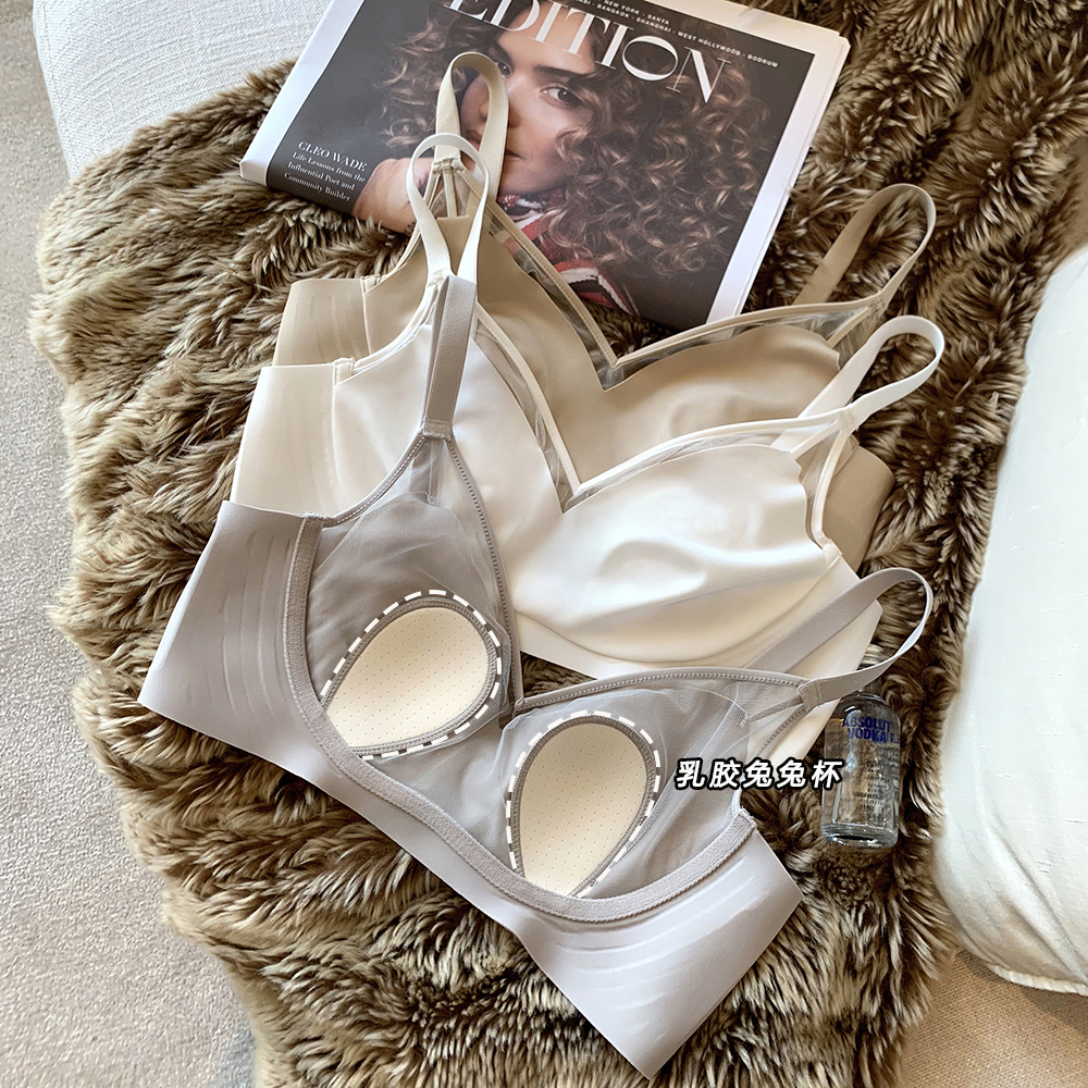 Ultra thin lingerie female rabbit ears Water crystal cup lace sexy no steel ring big chest display small collection of secondary milk without scar underwear hood