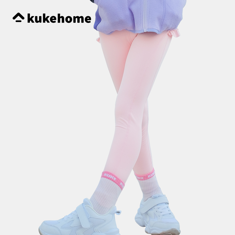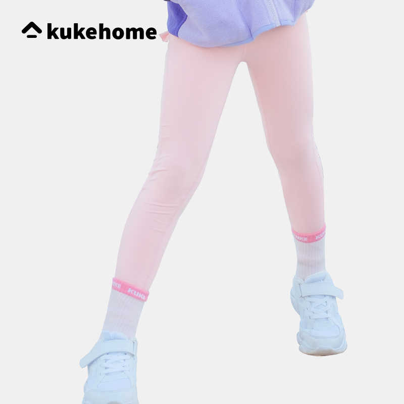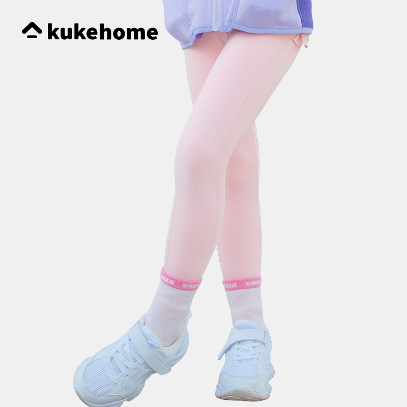 KUKE autumn and winter new children's yoga pants nude stretch ruffles plus velvet bottoming casual physical fitness pants