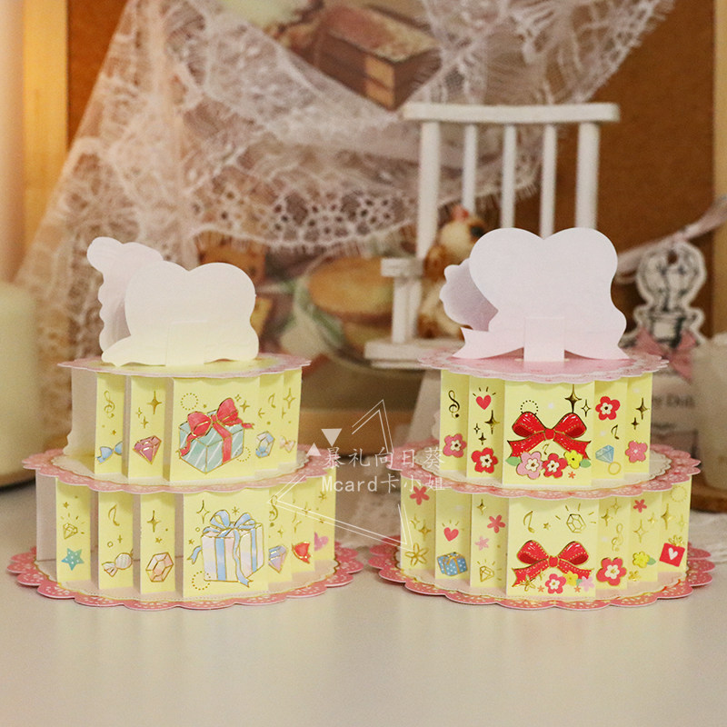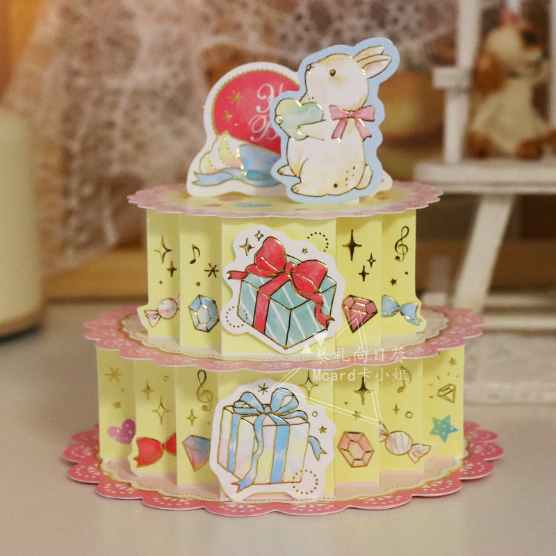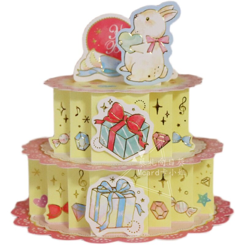 Miss Card All Season Cute Rabbit Butterfly Knot Cake Birthday card Qingsheng wishes a handwritten gift card two pieces