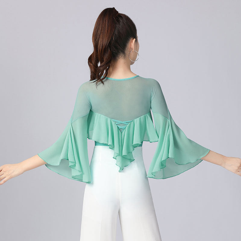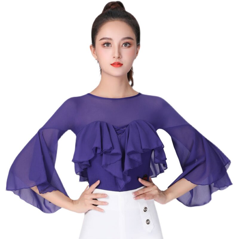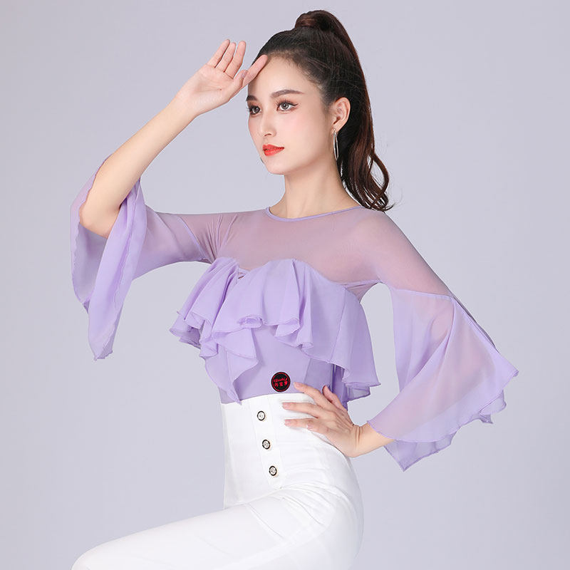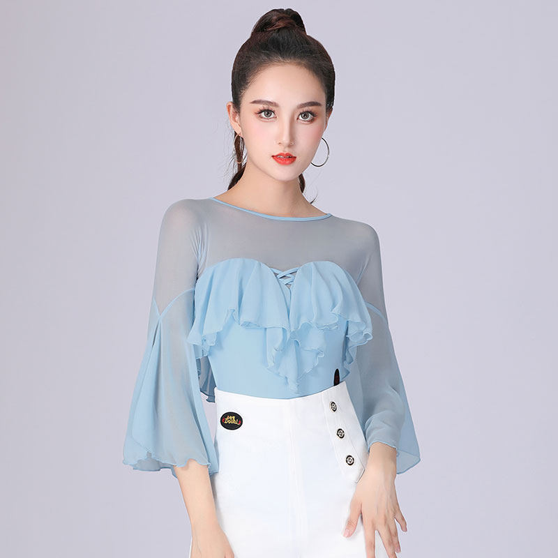 Waltz blouses women rehearsks for trumpets flutzing sleeves Fashion pretty dance clothes Akio high-end Latin dance Twin Dancing Costumes