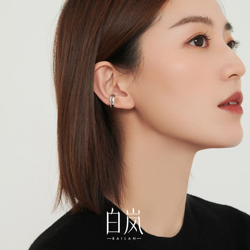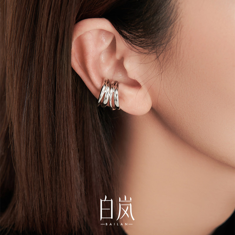 White Lan Bicyclo Ear Bone Clip 925 Silver Ear Clip Woman No Earhole Temperament Ear Accessories Small Crowd Design Sense ED2425-Taobao