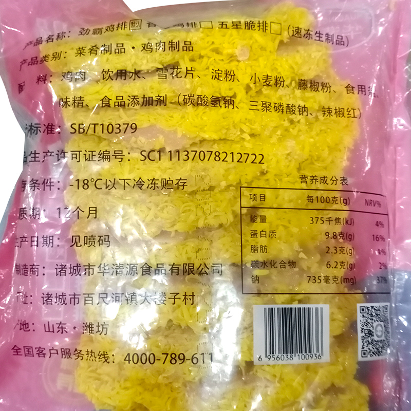 Hua Qingyuan Snowflake Gold Silk Oil Fried Chicken Ribs Semi-finished Snack Frozen Ingredients Burger Chicken Pickpocketing Chicken Breast commercial