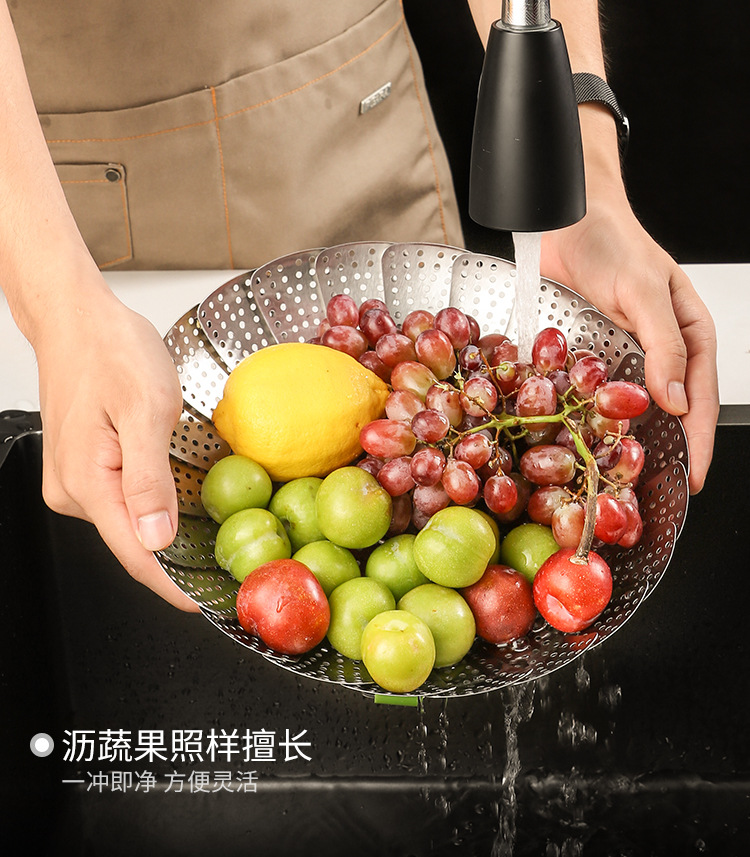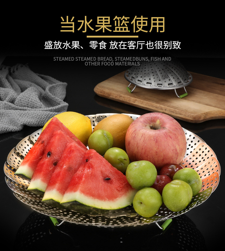 Stainless steel telescopic steaming rack multi-functional foldable steamer rack household water-proof steamer plate steamer round steamer plate steamer