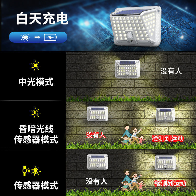 299w (human body sensing dark autobright) 200W (body sensing day black automatically bright) 150W (human sensing day black automatically bright) 5oW (human body sensing dark self