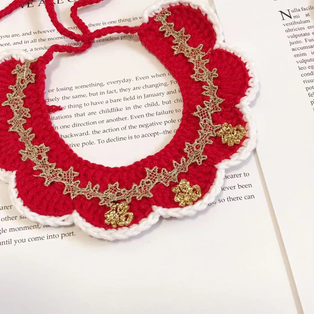 New Year's knitted cat collar, festive cat collar, wedding bow, cat neck jewelry, dog collar decoration, Chinese New Year