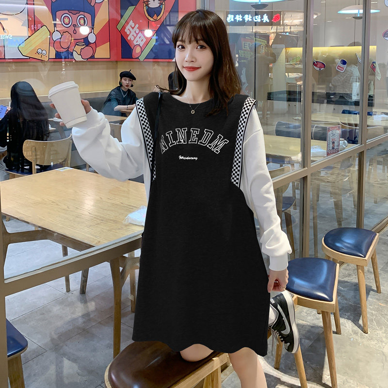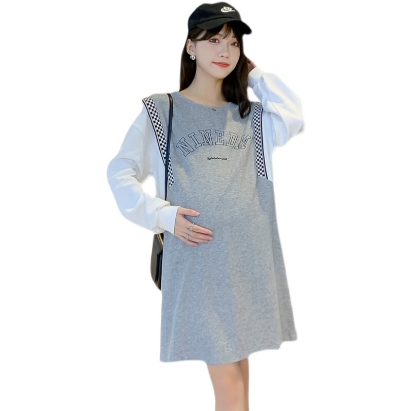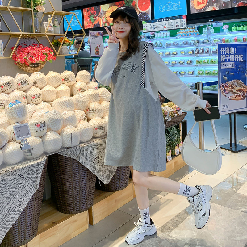 Pregnancy Woman Dress 2022 Spring Loaded new Korean version Long version Long sleeves Ocean dress Less age Large size Loose Wear and Lean Weaters