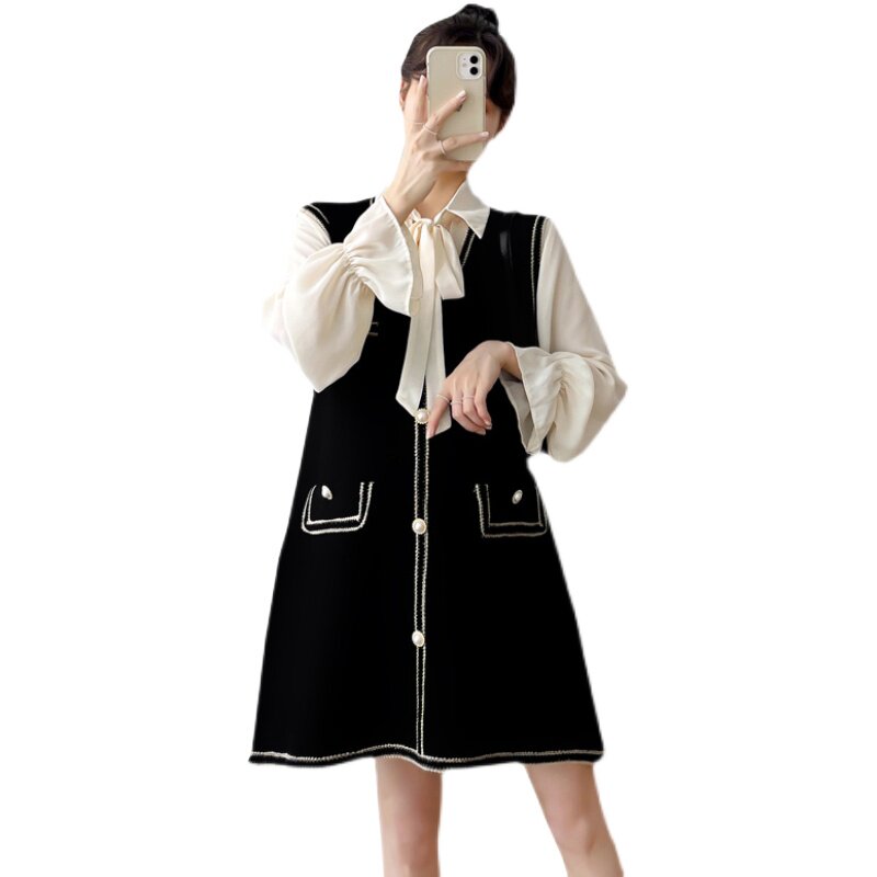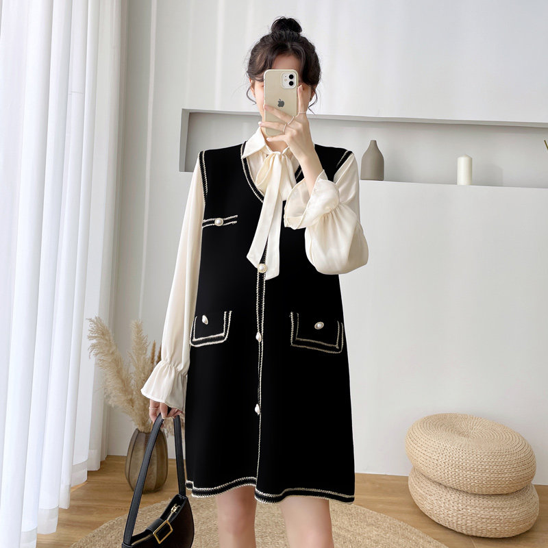Pregnancy women dress 2022 Spring loaded new Korean version of the long version of the spring Fashion large size Loose Two-piece Suit