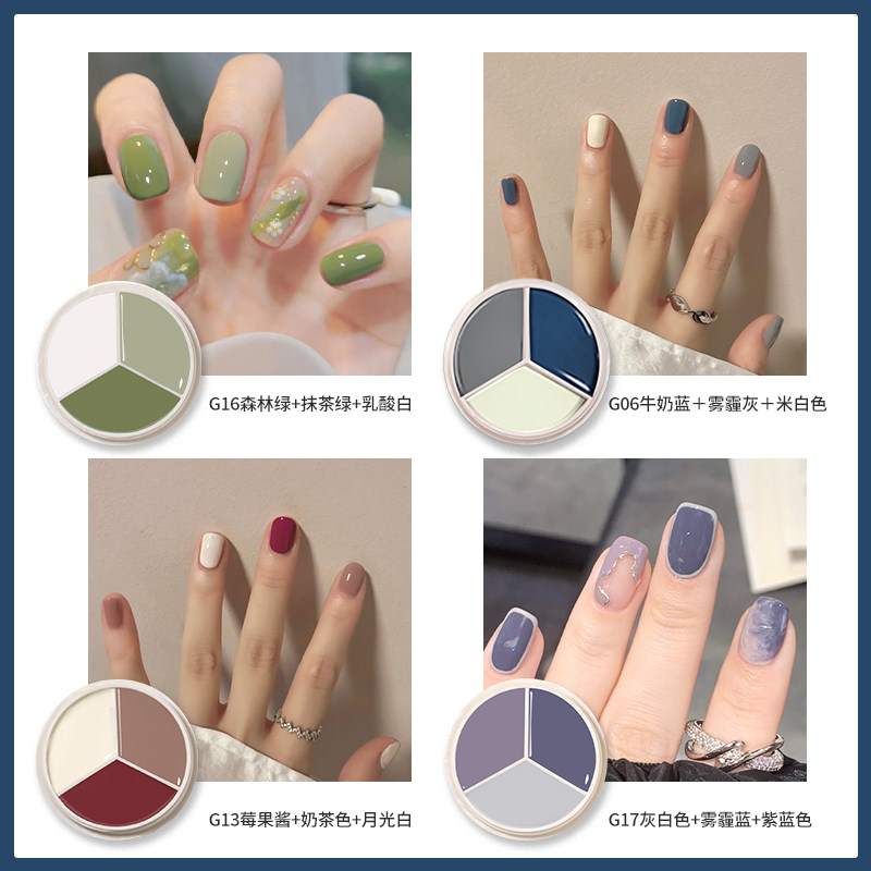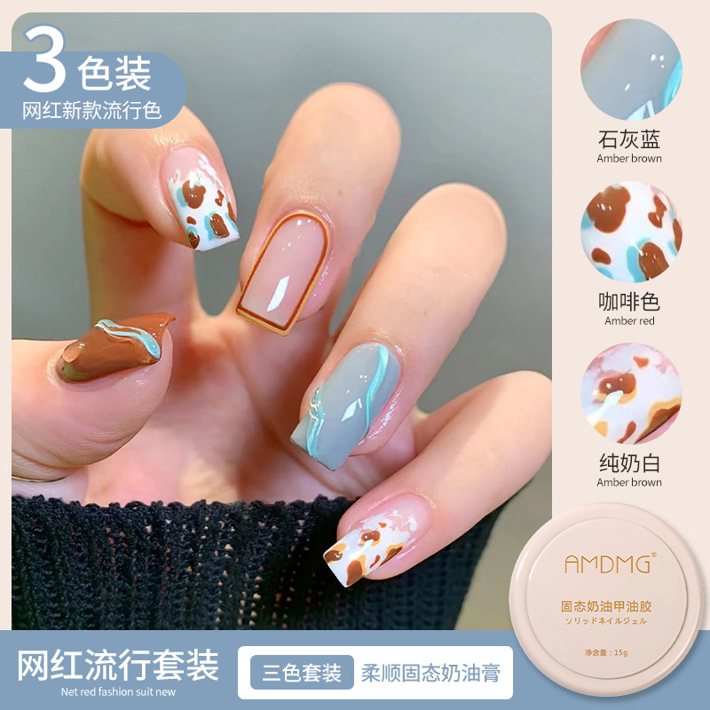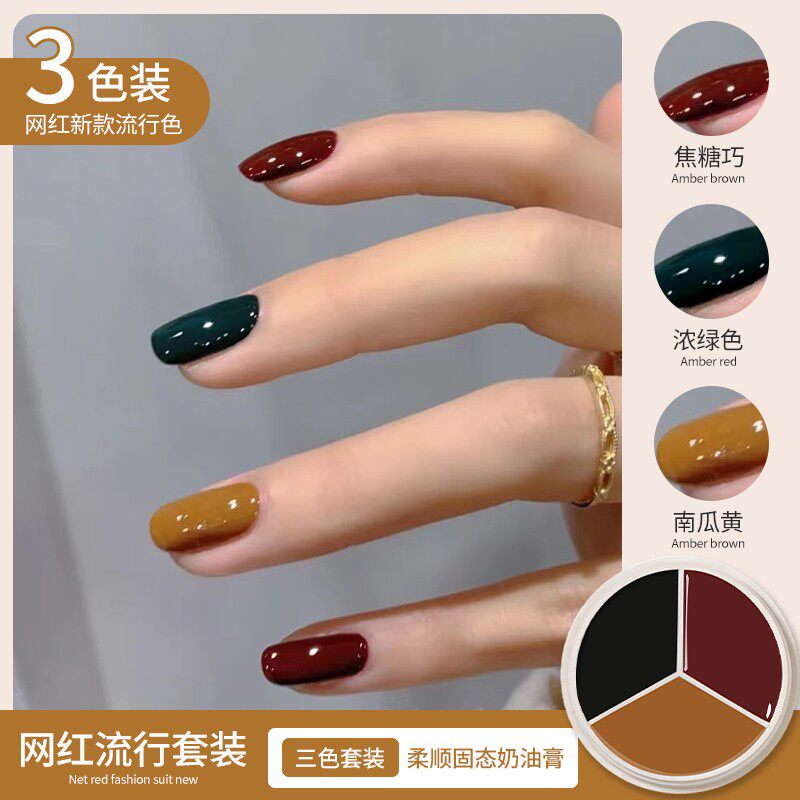 2021 manicure autumn and winter new net red Japanese canned solid cream solid three-color nail polish glue phototherapy set