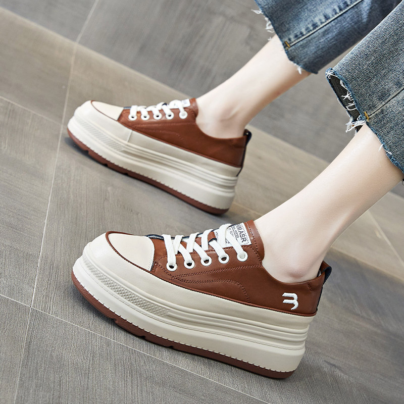 Inside heightening women's shoes 2022 spring new wave thick bottom muffin shoes single shoes fashion bursting small white shoes casual board shoes