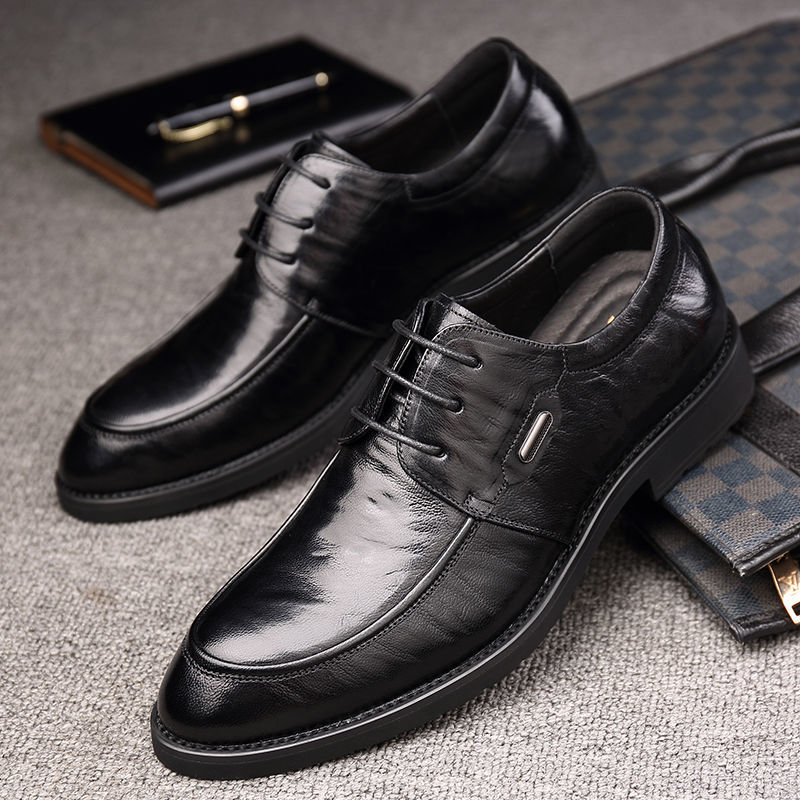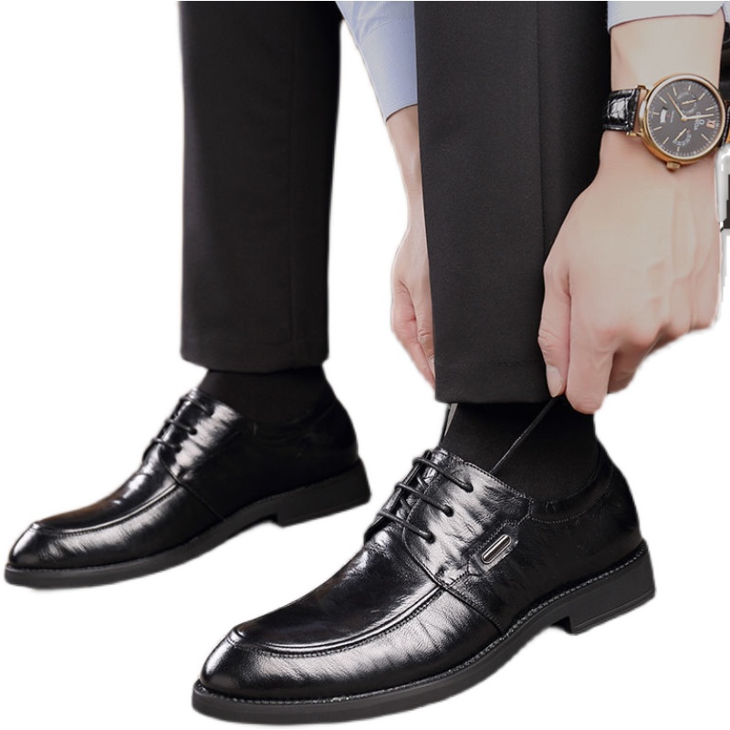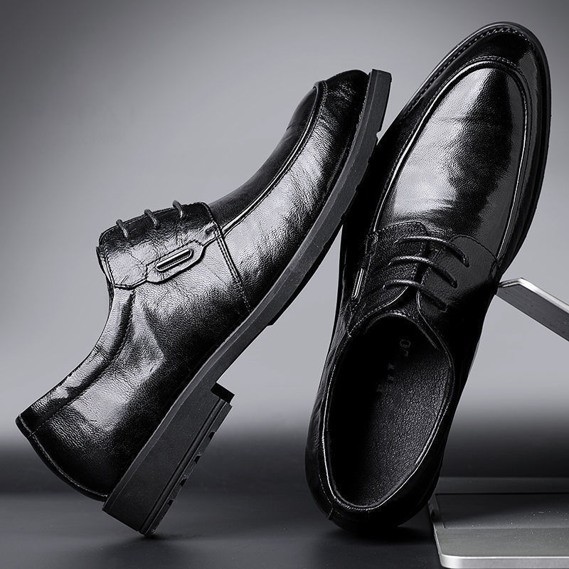 New leather business formal dress groom wedding shoes men's autumn and winter soft leather trend all-match British men's casual shoes