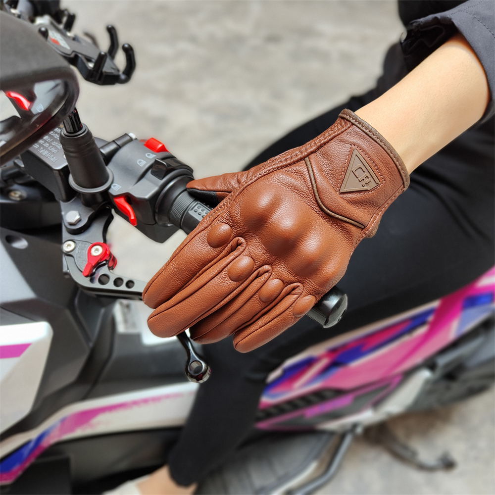 Locomotive Season Retro riding genuine leather anti-fall full finger touch screen waterproof locomotive coffee color gloves male and female universal