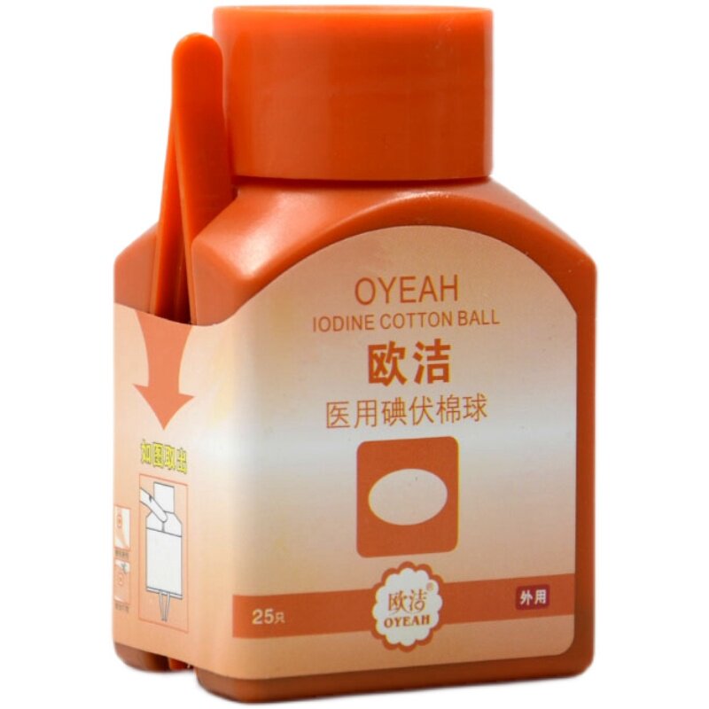 Ojie Medical Iodine cotton ball Home Skin Wound Clean Sterilised Iodine Wine Iodine Tincture Sterilized Cotton Balls 25 grains