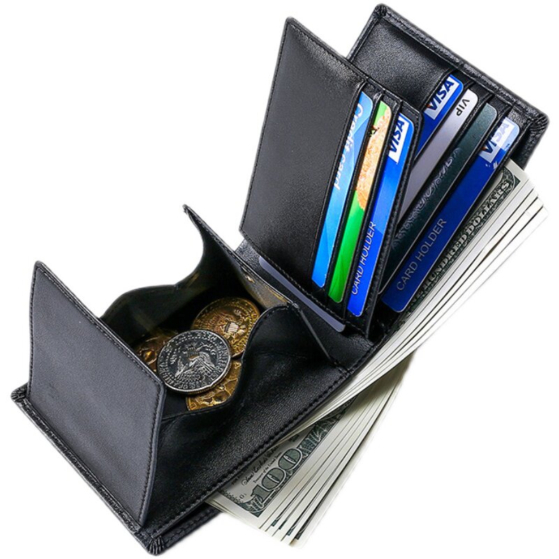 Men's head layer of cow leather genuine leather wallet fashion trifold short with zero wallet cross coin rfid theft proof wallet