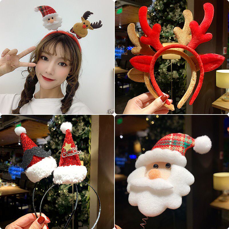 # letter Christmas hat (hairband)# bearded Christmas hat (hairband)# mustache Christmas old man (hairband)# snowflake sequins antlers two snowflakes (hairband)# plush cat ear wine red (hairband)