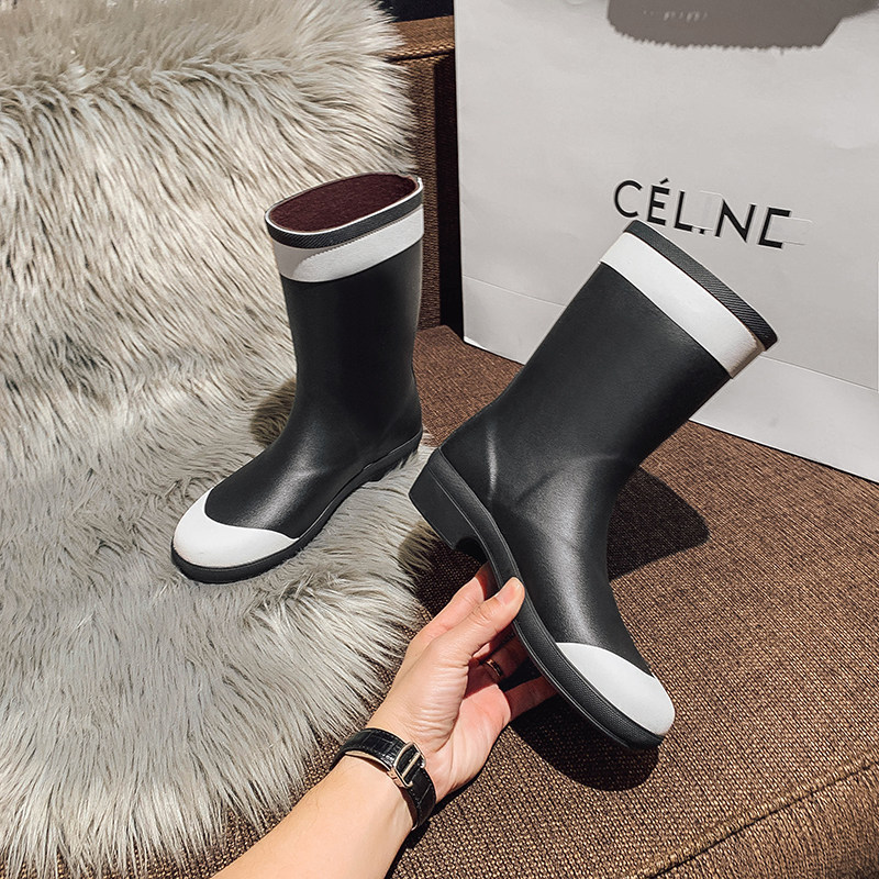 Net red with the same rain boots women's new small fragrant style ancient fashion outside the knee waterproof thick-soled mid-tube rain boots tide