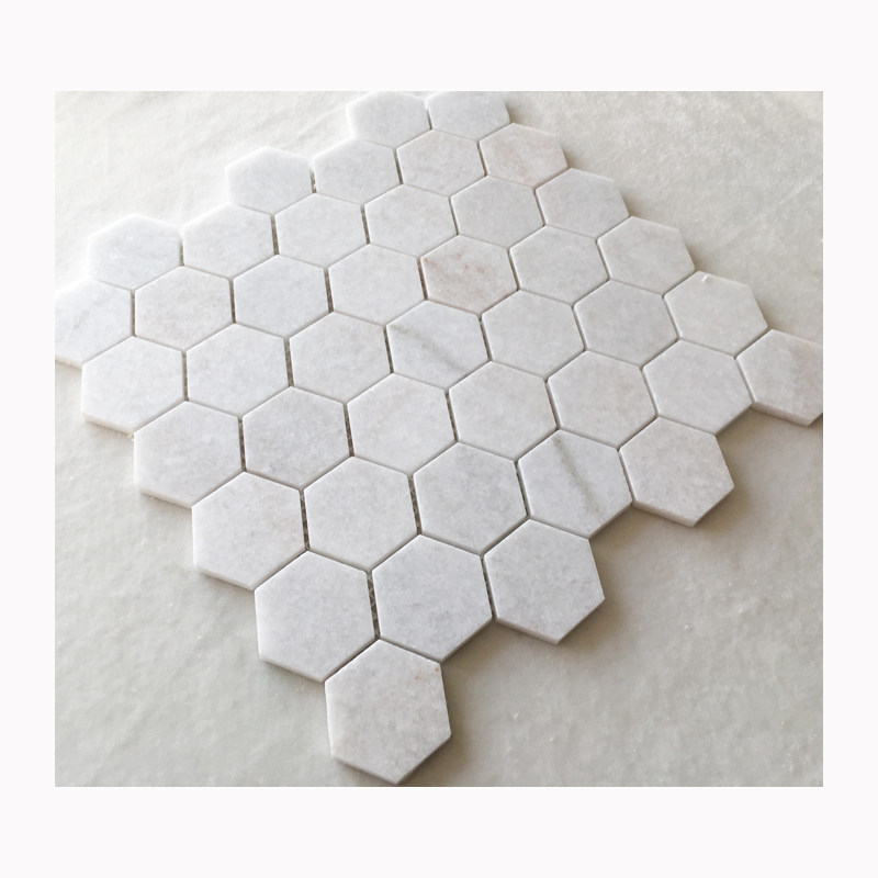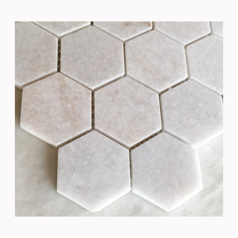 White Hexagonal Stone Mosaic Wall Stickup Natural Marble Greek White Hanwhite Jade Pool Bathroom dressing room