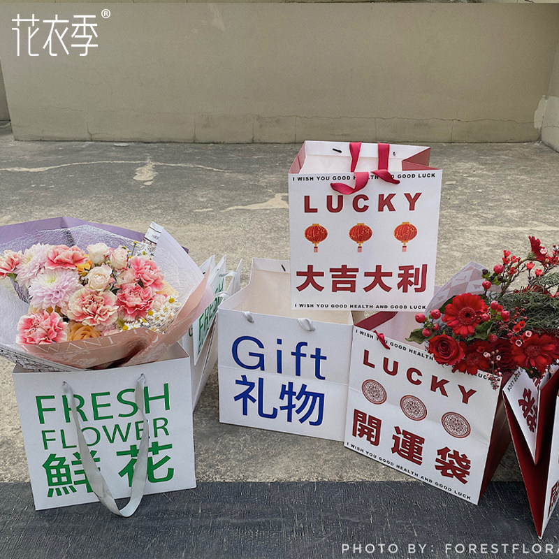 New bouquet handbag square bag lengthened handle flower bag flower case thickened florist gift bag packing bag