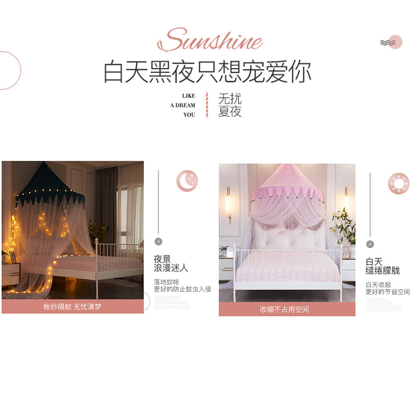 Romantic Princess Room Girl Bedroom Hanging Wall Ceiling-Free Punch Household Semi Dome Bed Curtain for Night Light