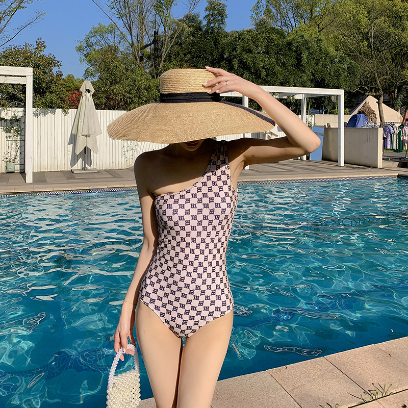 Korean in single shoulder retro swimsuit female feeling small chest cover meat red holiday resort bubble hot spring