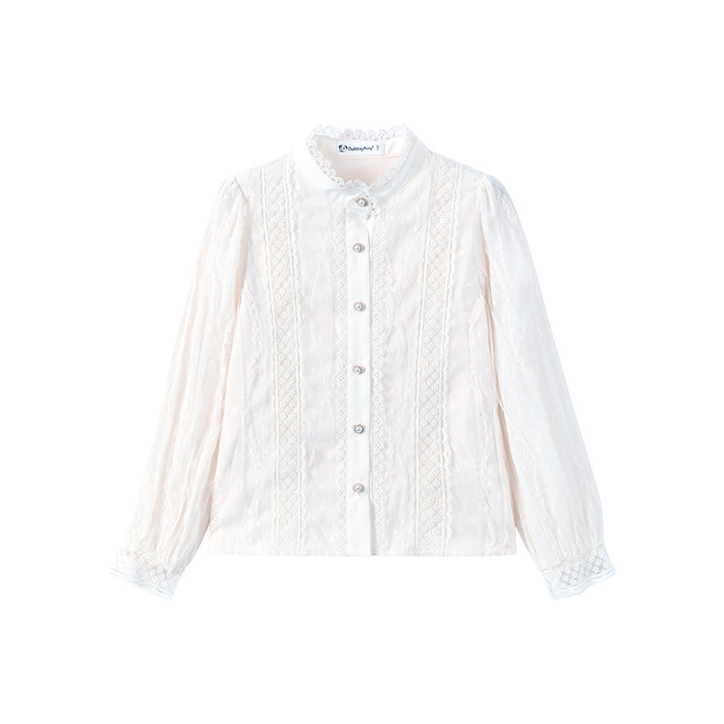 Girls' shirt 2022 spring and summer new foreign style children's court style lace stand collar shirt chiffon top for big children