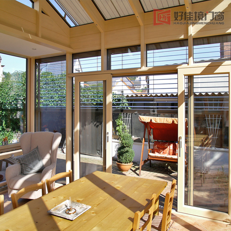 Villa Central European Style Garden Aluminum Clad Wood Greenhouse Triple Glass Broken Bridge Aluminum Doors And Windows Seal Balcony Villa Custom