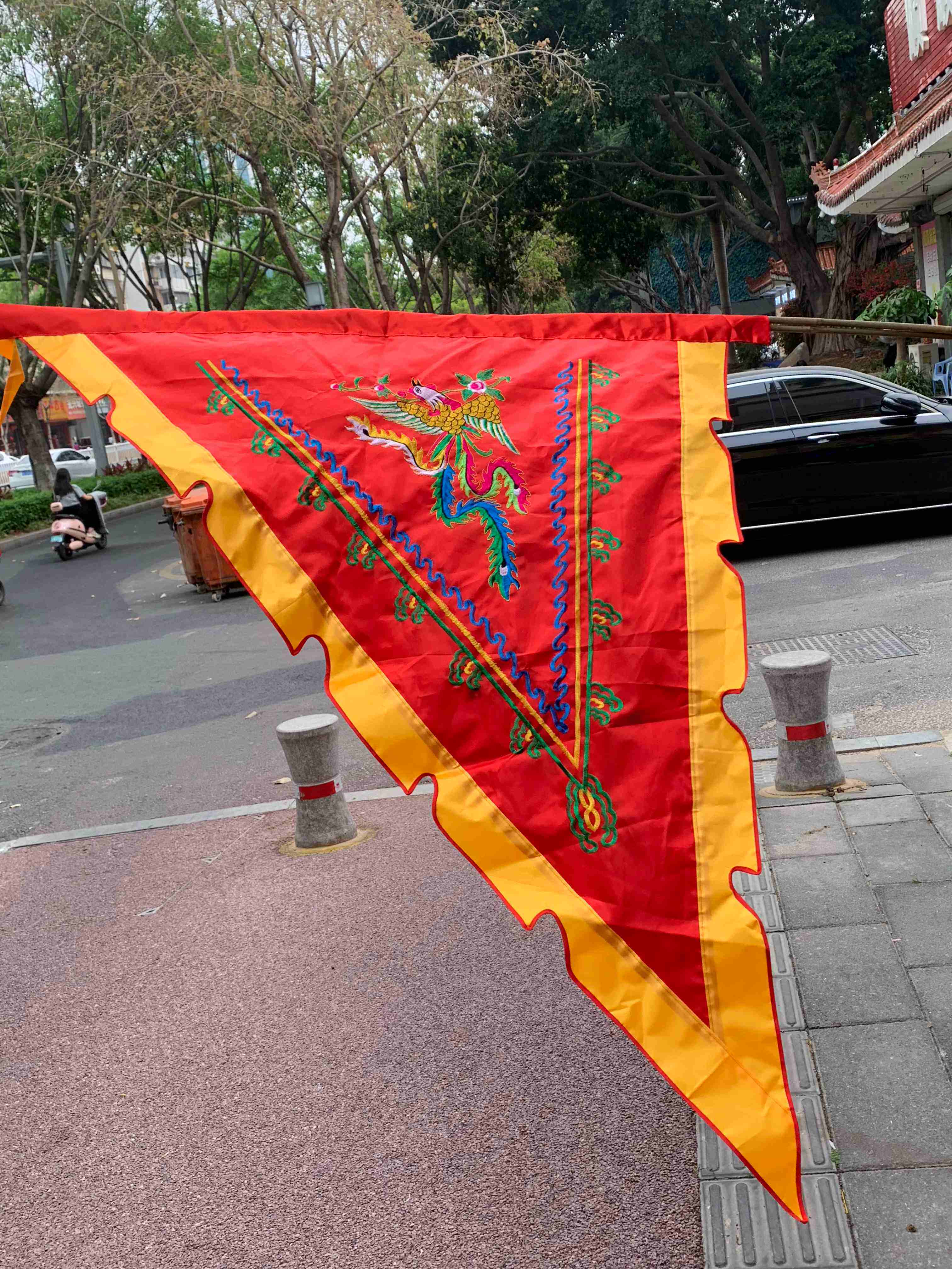 Phoenix flag triangular phoenix flag ancient costume flag double-sided gold embroidered phoenix pattern various specifications customized 15 meters