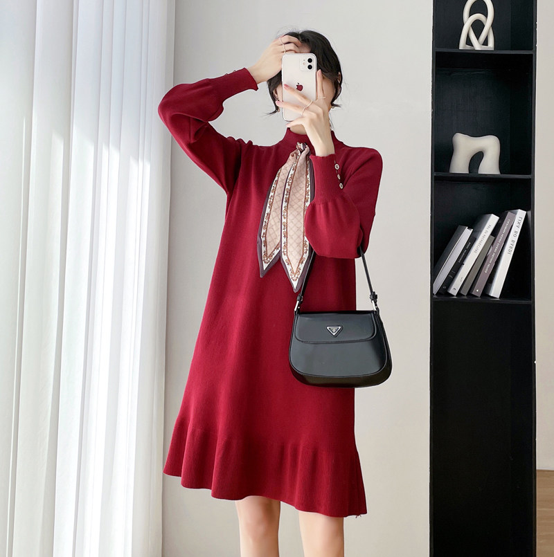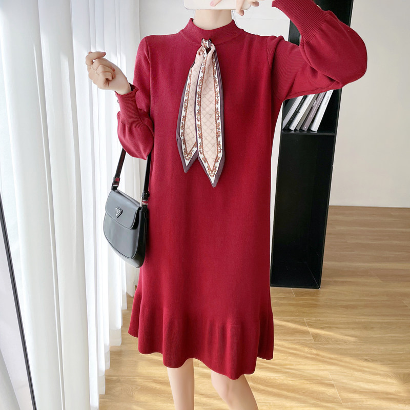 Spring and autumn loaded with new New Year's Eve gestation in the middle of a long version of the Chinese New Year's Eve dress for the bottom dress New Year's Eve clothes 100 hitchhiking