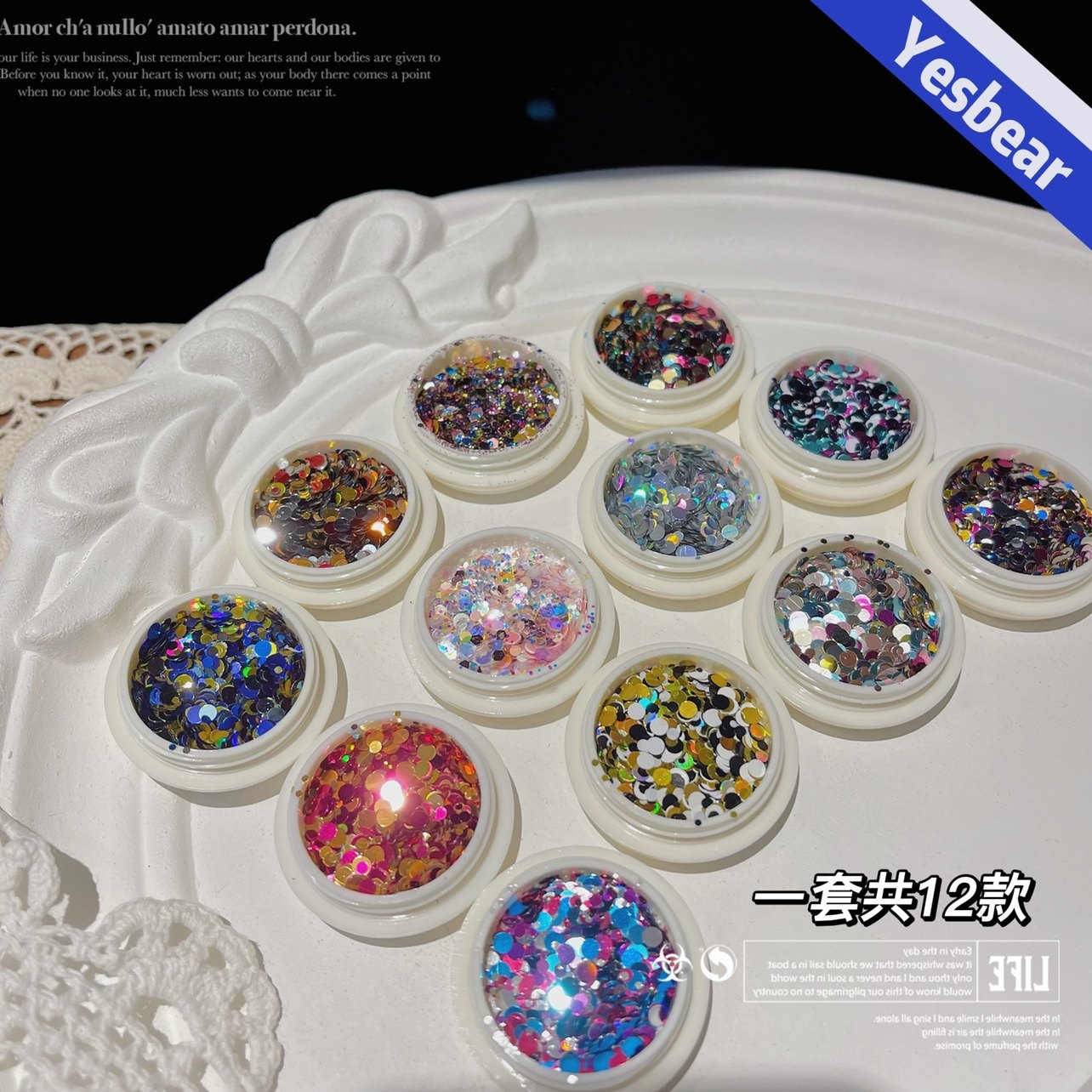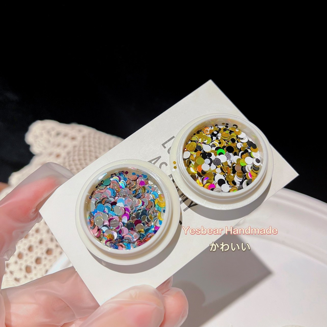 Yesbear Big Bear Handmade Colorful Polka Dots and Dots Mixed Color Sequins Net Red Dots Mixed Epoxy Nail Glitter