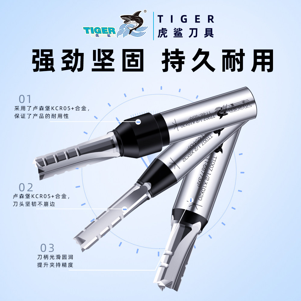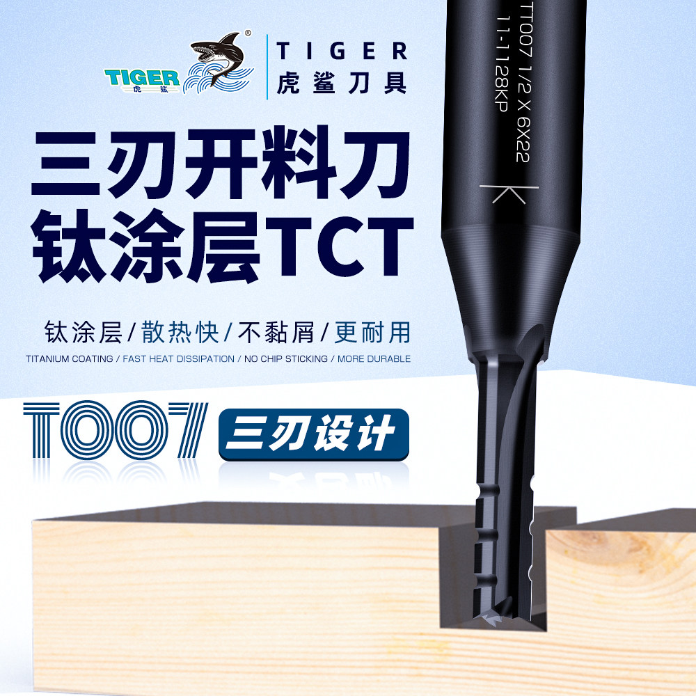 Tiger shark triple-edged T007 alloy open material knife TCT wood milling cutter numerical control engraving machine tool straight knife