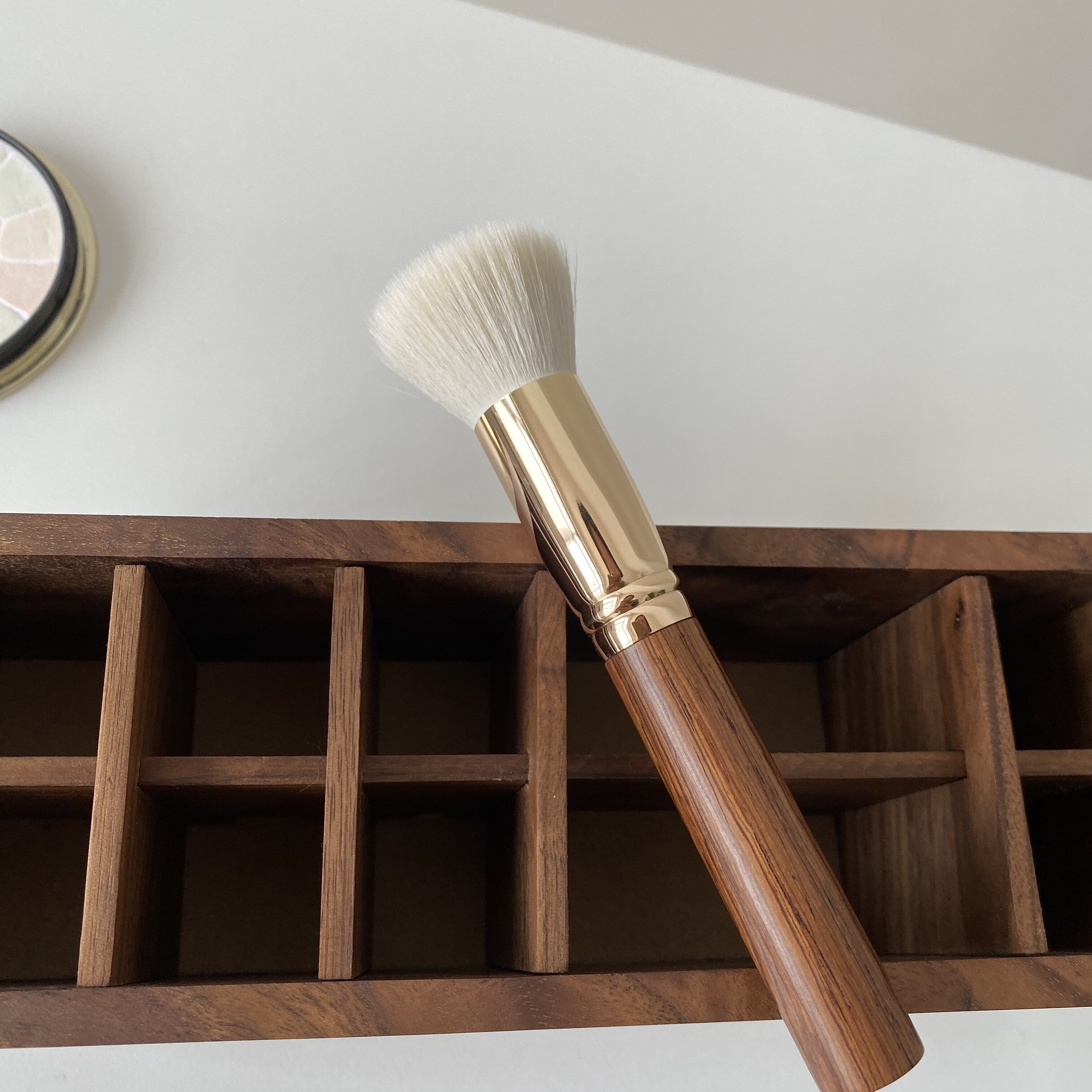 A powder cake brush for a meal