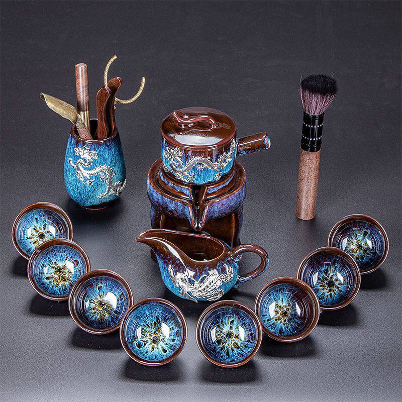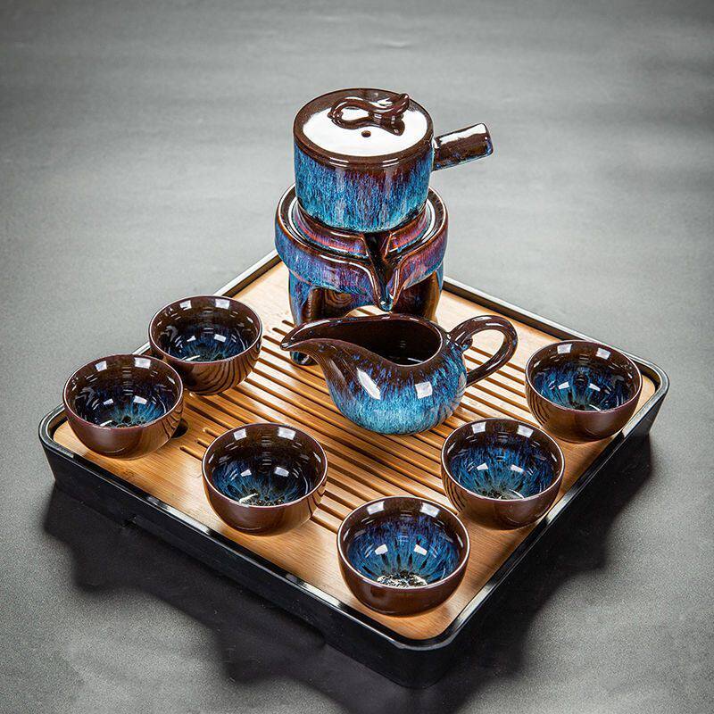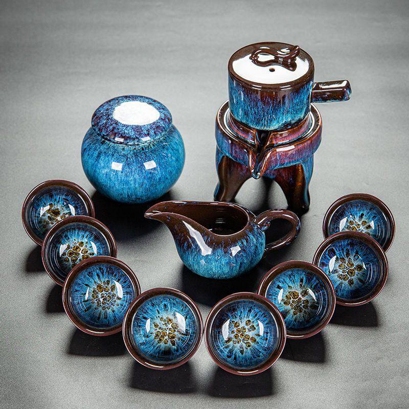 Tough pottery automatic tea set 8-piece set of coarse pottery automatic tea set 11-piece dark fragrance automatic tea set 10-piece red rhyme automatic tea set 8-piece red rhyme automatic tea set 11-piece set (tea jar) red rhyme automatic Tea Set 1