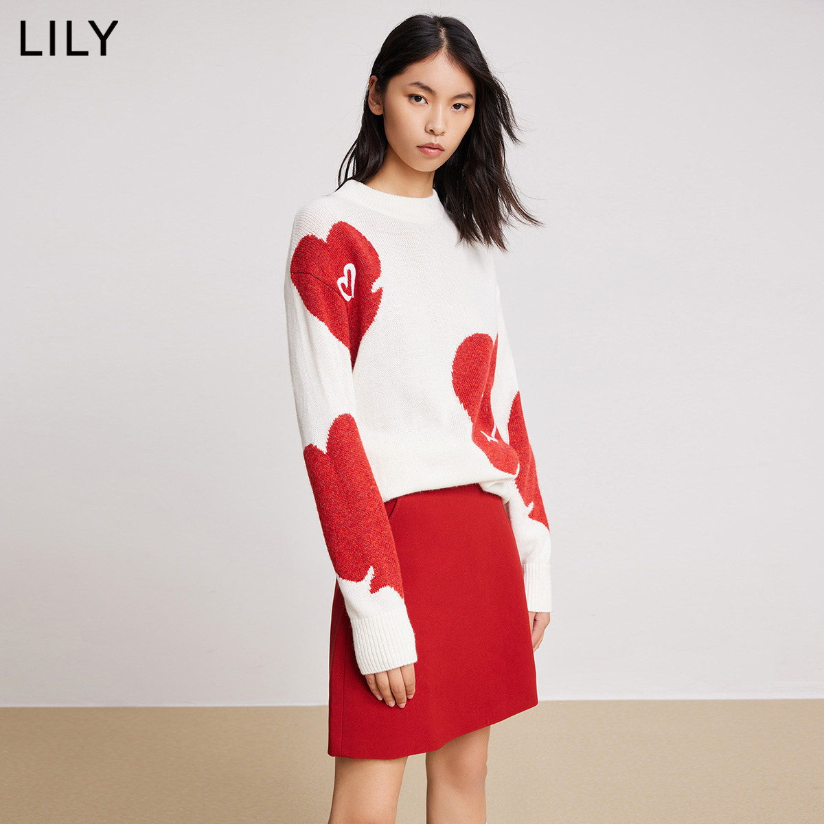 (co-section of the mall) LILY2022 Spring new women's dress New Year Red Caring and Knitted Sweater and Loose Sweater