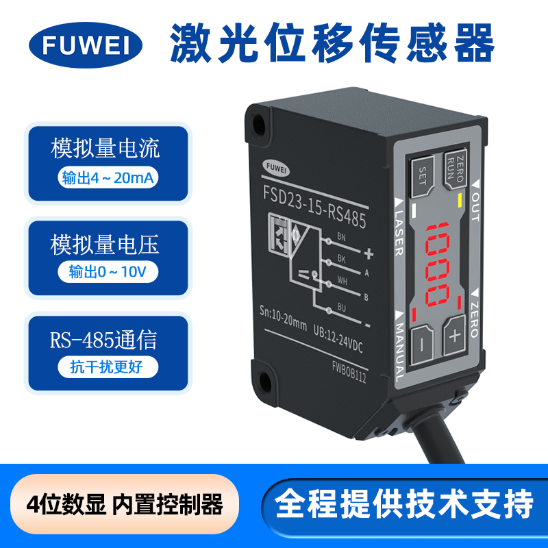 FUWEI high-precision laser displacement ranging sensor FSD23 industrial thickness measurement high flatness low blind zone induction