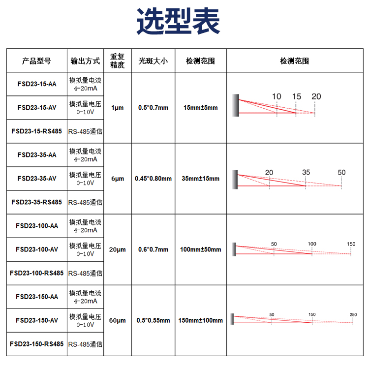 FSD23-15-AA Ranging 10-20mmFSD23-15-AV Ranging 10-20mmFSD23-15-RS485 Ranging 1