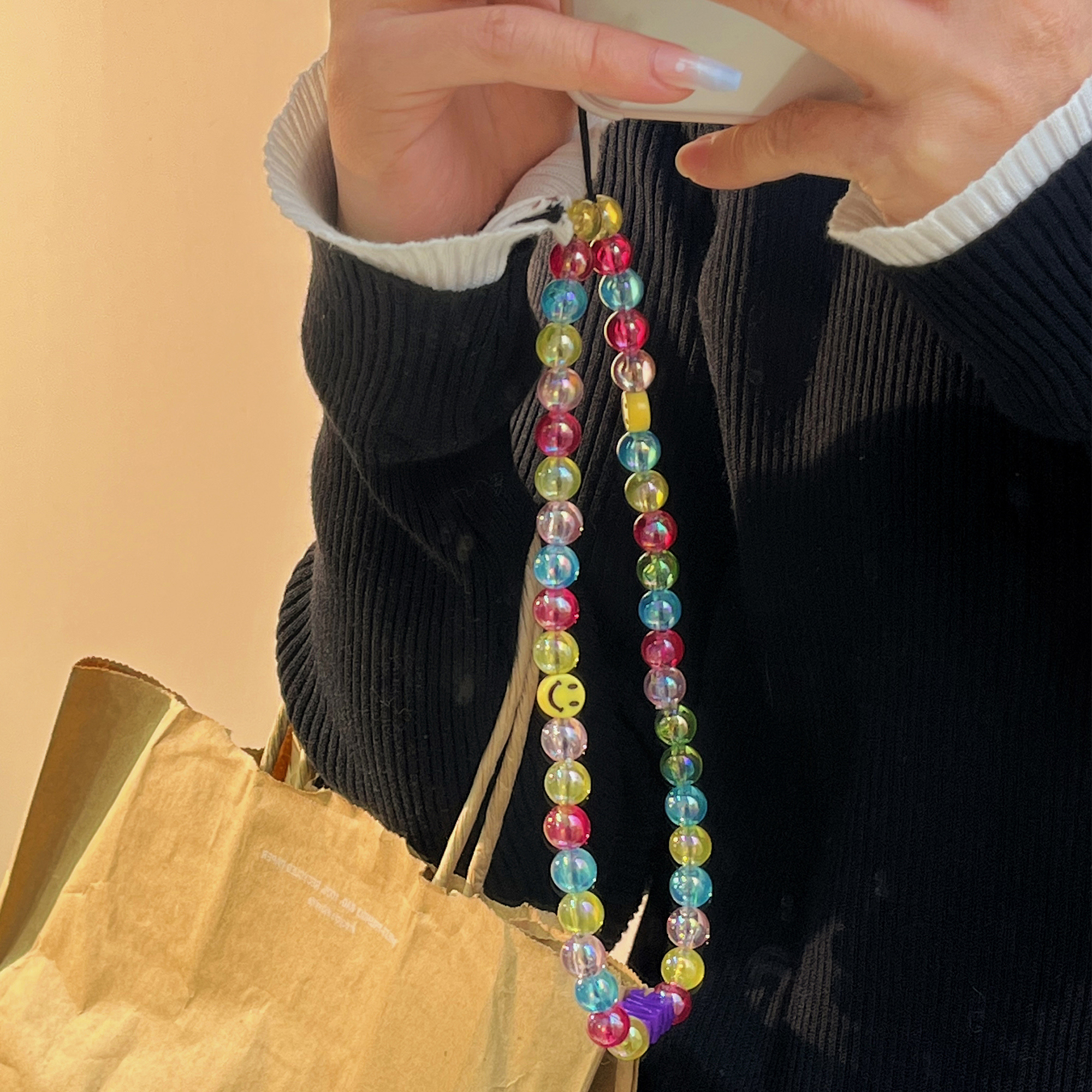 Not afraid of slippery hands High-end beaded chain ~ mobile phone lanyard female wrist rope lanyard chain sling short section ins style advanced