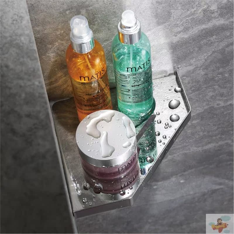 Mengteng small stainless steel tripod bathroom corner storage shelf bath room corner shelf non-perforated small