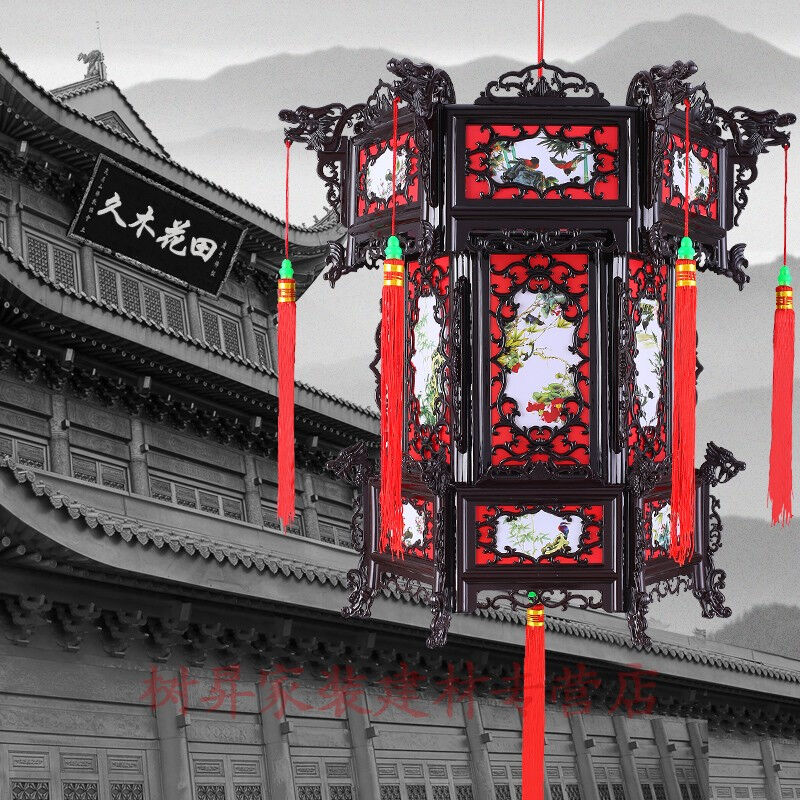 Large doorway wood-plastic material imitation ancient palace lamp large red balcony lantern hanging decoration New Year's festive retro imitation solid wood China wind