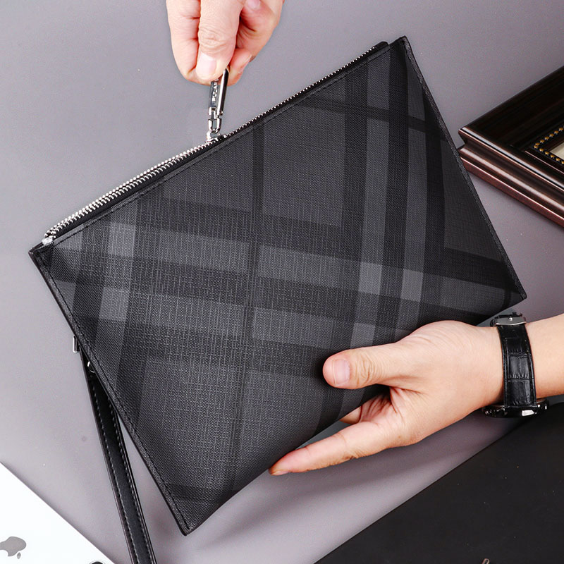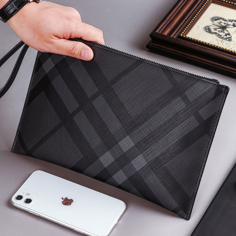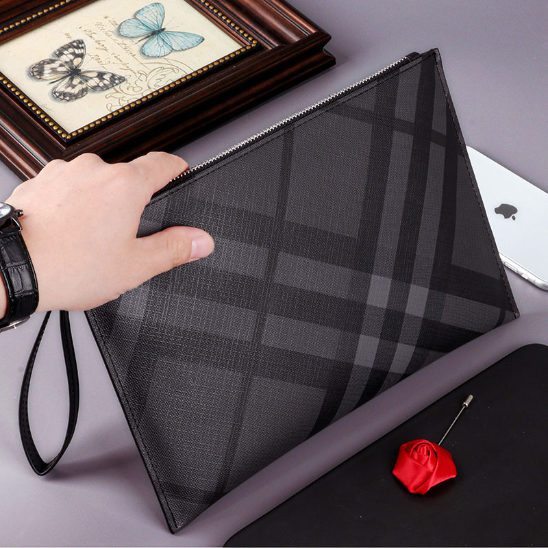 The new handbag men's clutch bag envelope bag super book clutch bag men's clip bag plaid casual business tide brand simple