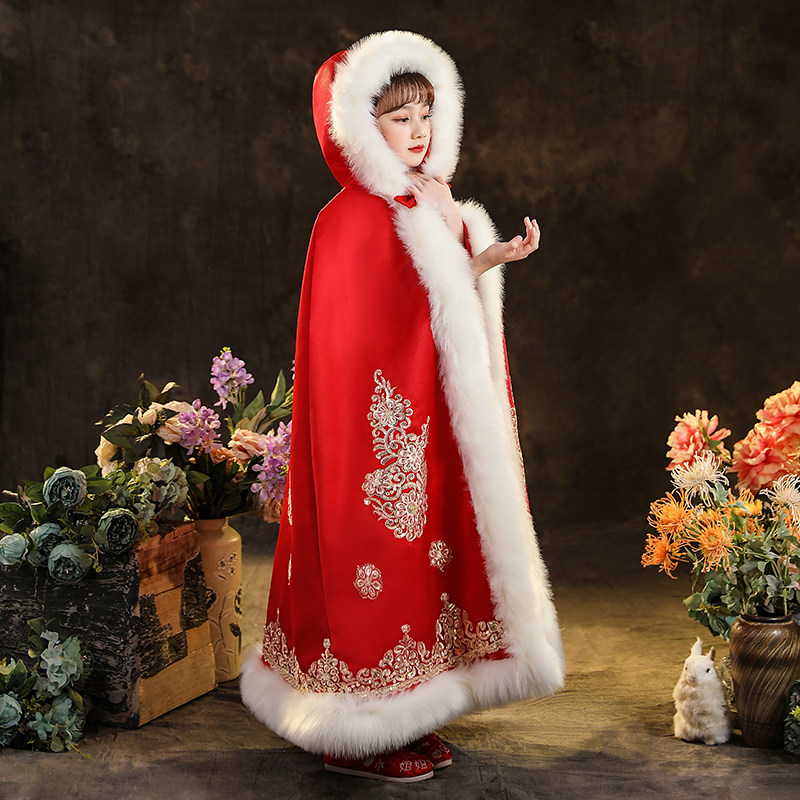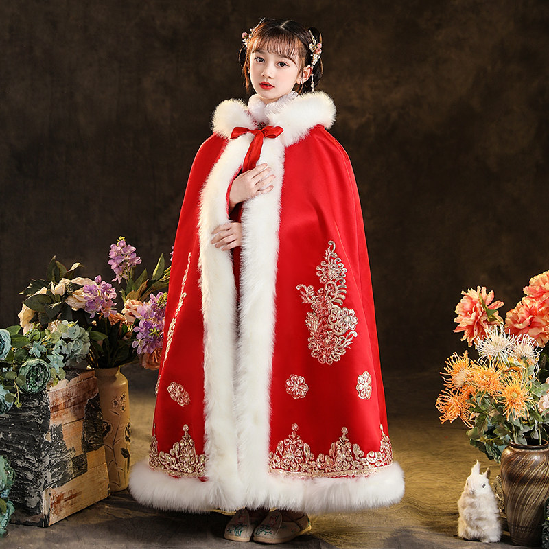 Women's Baobai New Year uniforms Children's ancient windy winter style Han clothes girl cloister cloak cape hood jacket autumn and winter 2023 new-Taobao