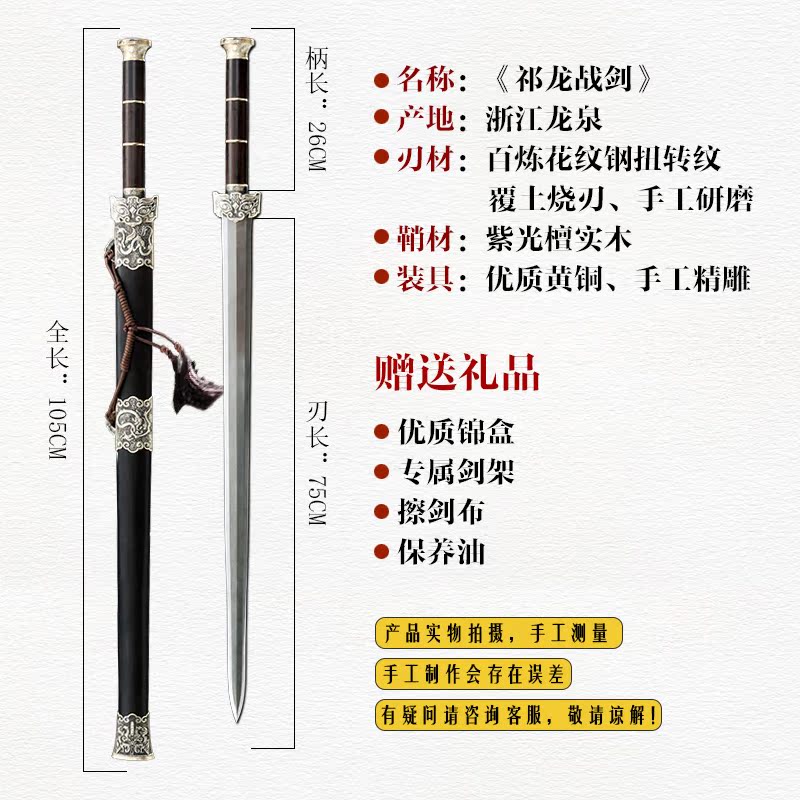 Longquan Ball Paint Steel Hanjian Hangjian Sword Long Quan Defense Town Sword Cold Weapon Weapon