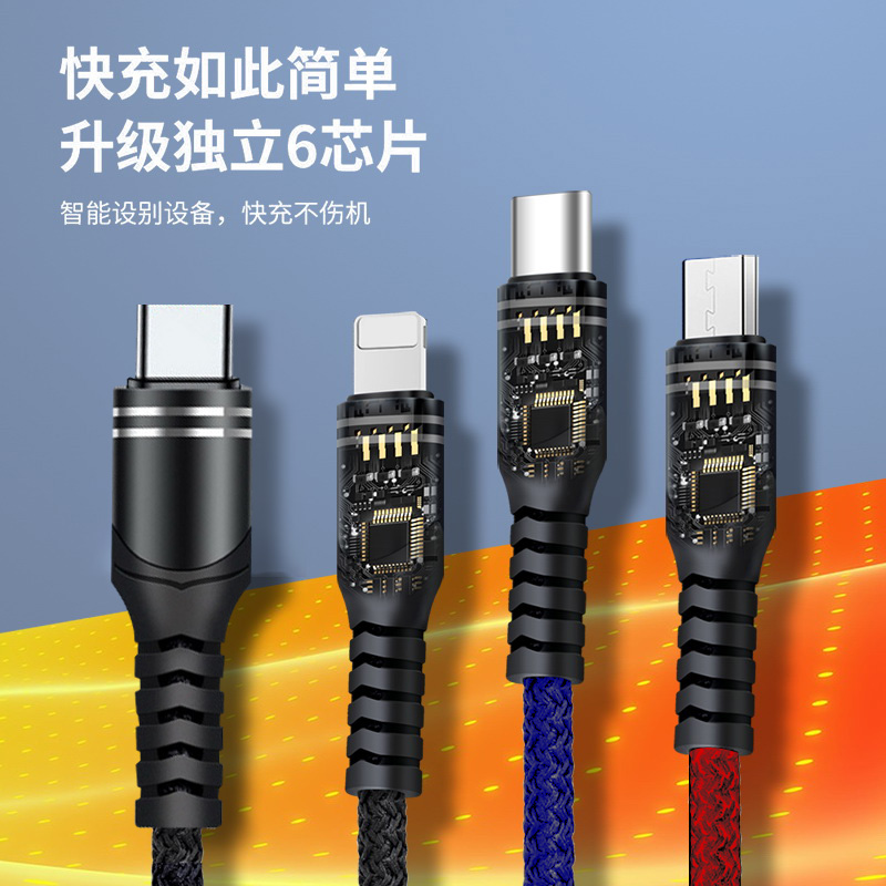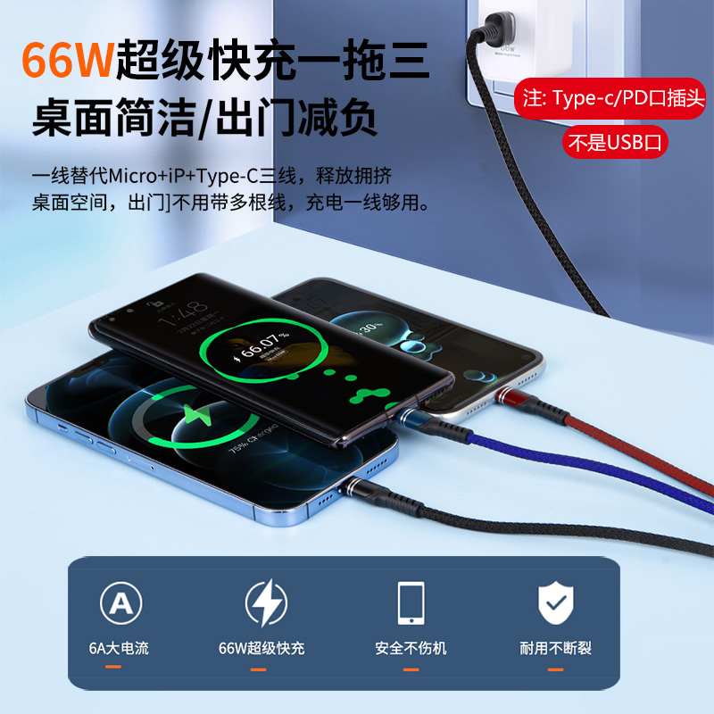 6a data cable three-in-one 5a super fast charge pd one-to-three car car mobile phone universal three-head fast-charge charging cable flash charge multi-head function suitable for Apple Huawei tpyec Android