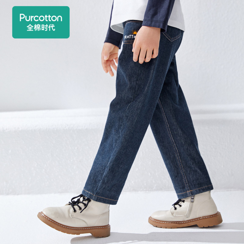 Full Cotton Age Child Clothing 2022 Spring New Boy Shuttle Weaving Imitation Denim Pants Big Boy Casual Pants