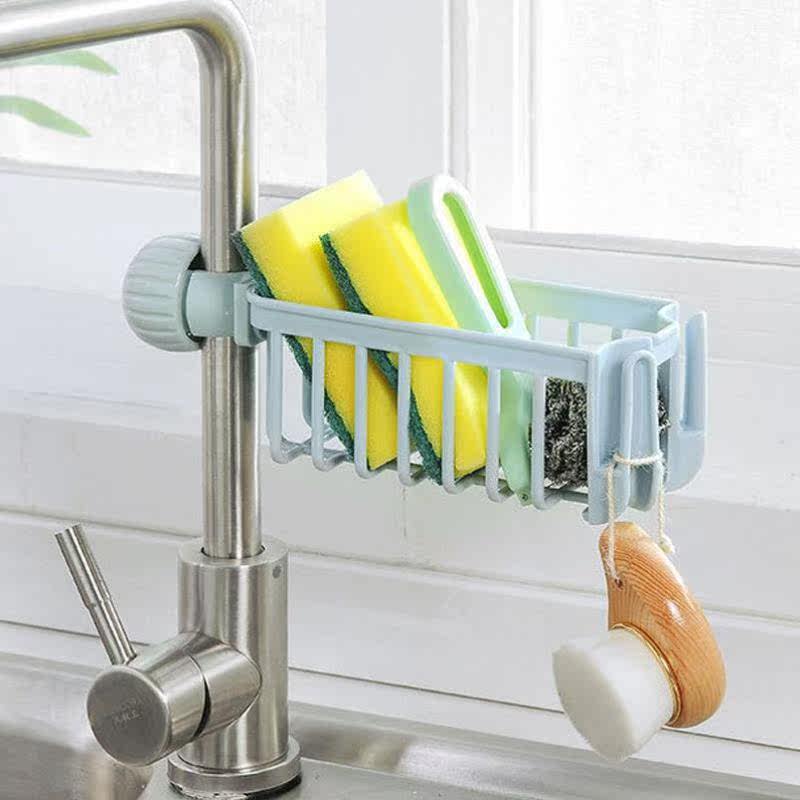 Faucet rack clip-on 304 stainless steel sink dishwashing sponge drain rack multi-functional kitchen rag rack