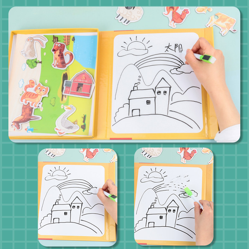 Animal two-in-one puzzle (can be painted) Dinosaur two-in-one puzzle (can be painted) Farm two-in-one puzzle (can be painted) letter puzzle intelligent magnetic tablet digital clock tablet