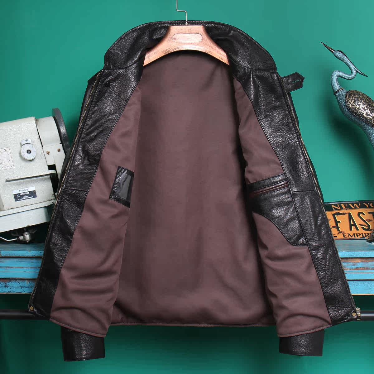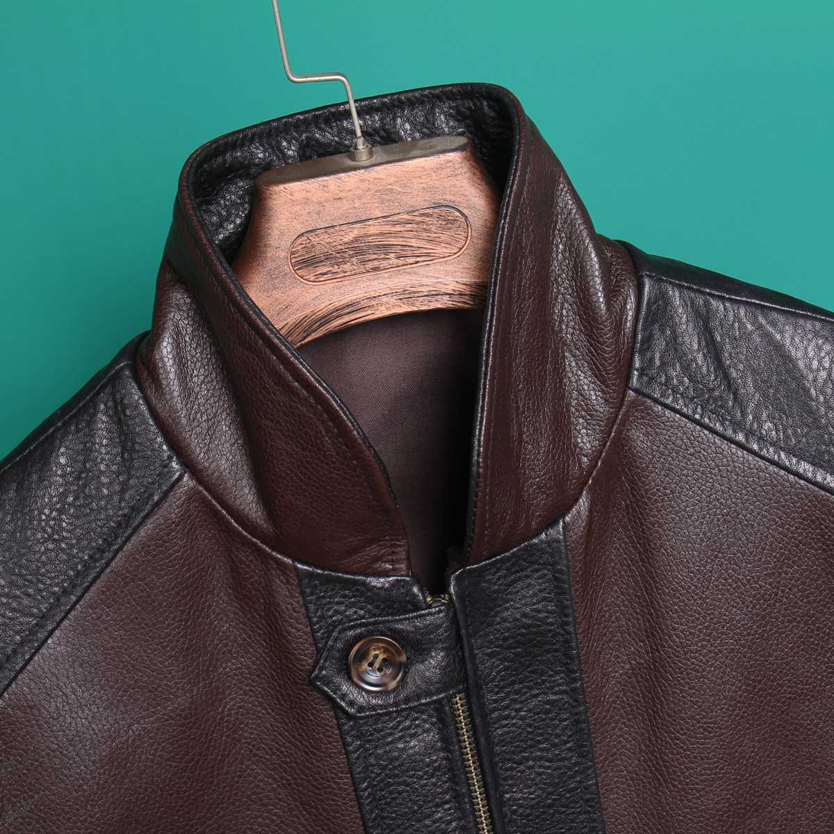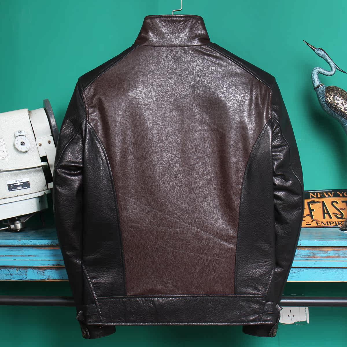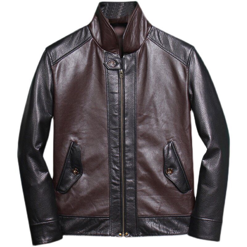 Emotional Sale 2022 New dermal skin male sheep skin short - liver leather jacket coloured splicing design