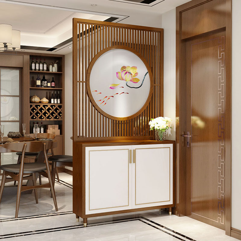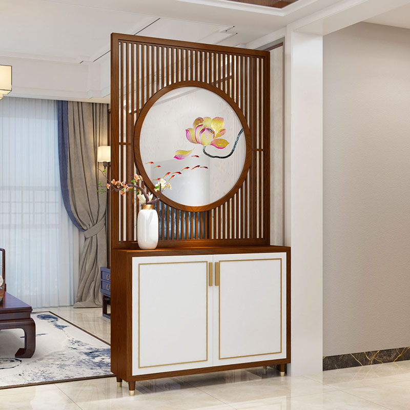 New Chinese-style inbound seat cabinet screen shoe cabinet integrated wood embroidered double-face living room compartment door partition screen