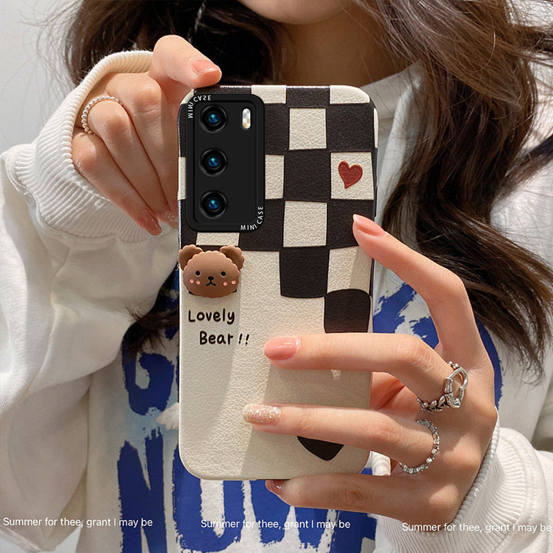 P50 Chessboard Plaid Small Bear Head Delivery Steel Membrane P50pro Chessboard Plaid Small Bear Head Send Fullscreen Soft Film P40 Chessboard Plaid Small Bear Head Delivery Steel Membrane P4